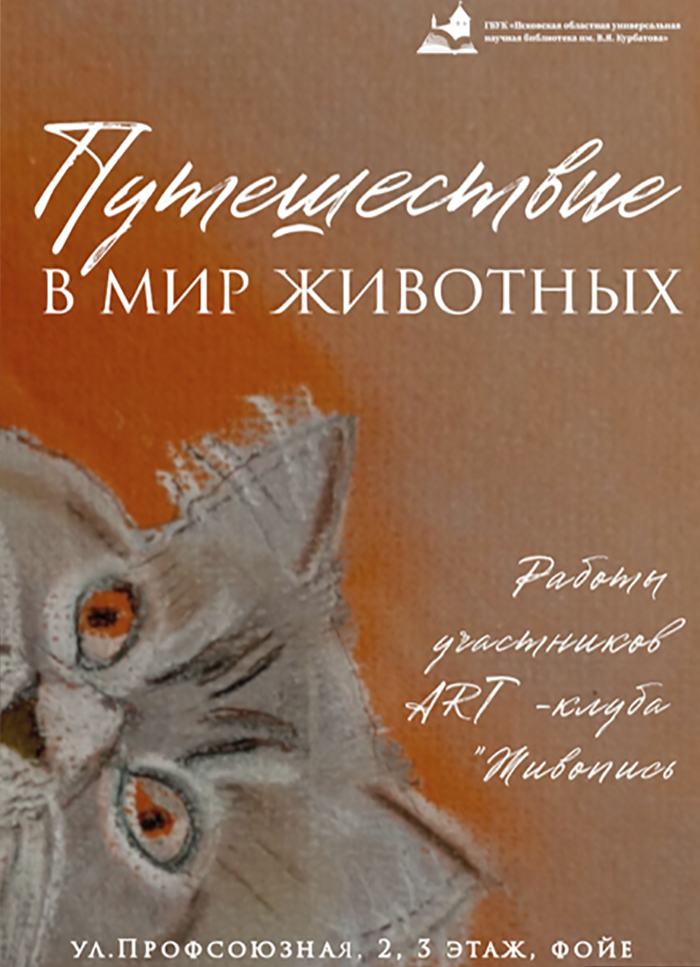 Выставка «Путешествие в мир животных» открылась в Псковской областной библиотеке26/10/2025Выставка художественных работ «Путешествие в мир животных», посвящённая представителям фауны, открылась в фойе третьего этажа Псковской областной универсальной научной библиотеки имени В. Я. Курбатова. Экспозиция будет доступна для посещения до 23 ноября, сообщает пресс-служба библиотеки.На выставке представлены работы участников ART-клуба «Живопись», действующего при библиотеке более 10 лет. «Экс… -