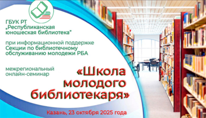 Межрегиональный онлайн-семинар «Школа молодого библиотекаря»29/10/202523 октября Республиканская юношеская библиотека Татарстана при информационной поддержке Секции по библиотечному обслуживанию молодёжи РБА организовала межрегиональный онлайн-семинар «Школа молодого библиотекаря».Основными темами Школы стали:• современные тенденции чтения подростков и молодежи;— креативные проекты и методы привлечения подростков и молодежи к чтению и в библиотеки;• геймифика… -