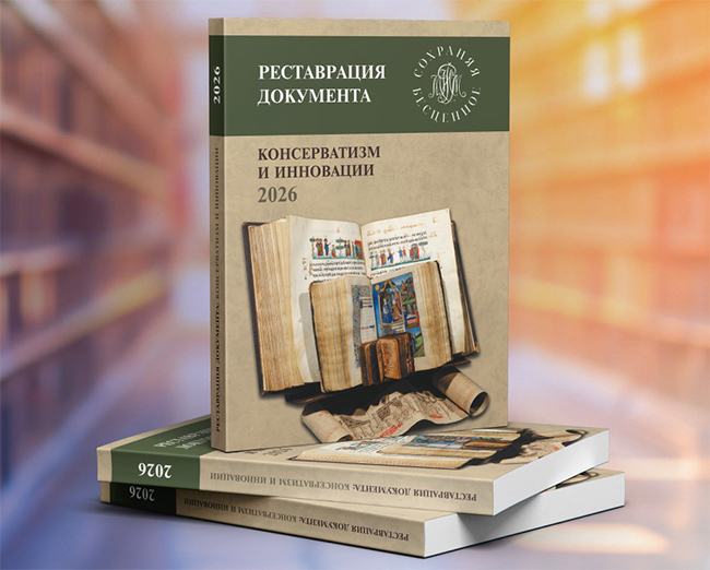 Инновации в реставрации документов03/04/2026Издательство «Пашков дом» выпустило сборник материалов «Реставрация документа: консерватизм и инновации-2026». Он приурочен к VIII Международному научно‑практическому семинару, который состоится в Российской государственной библиотеке 6–10 апреля 2026 года.Семинар на протяжении последних лет является крупнейшей международной площадкой по обмену опытом специалистов в области консервации документов…. -