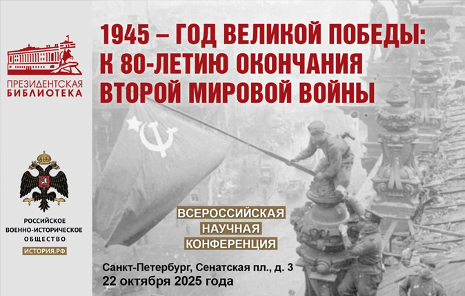 Президентская библиотека приглашает на конференцию, посвящённую окончанию Второй мировой войны17/10/202522 октября 2025 года в 10:00 в Президентской библиотеке откроется Всероссийская научная конференция «1945 – год Великой Победы: к 80-летию окончания Второй мировой войны».Мероприятие подготовлено совместно с Российским военно-историческим обществом и направлено на сохранение исторической памяти, противодействие фальсификации истории.Конференция будет посвящена ключевым событиям 1945 года, итогом к…