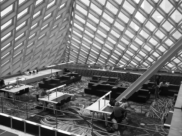 В Сиэтле находится красивейшая библиотека, здание которой целиком стеклянное. Оно чем-то напоминает пирамиду у Лувра. Внутри всё оборудовано по последнему слову техники.