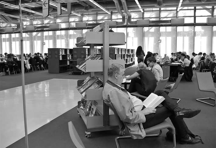 Ещё раз подчеркну: восхищают не просто огромные площади открытого пространства, но неимоверное число посетителей. Затруднительно определить, сколько людей находилось здесь одновременно в момент нашего посещения; такое ощущение, что несколько тысяч. Посмотрев позже опубликованные в печати и на сайте библиотеки материалы, поняла, что её ежедневно посещают 5–7 тыс. человек, в воскресенье — наиболее высокий уровень посещаемости, а самое «тихое» время — летние месяцы. Как шутят сами сотрудники, очередь на вход в библиотеку — её главный недостаток. О таком недостатке многие российские библиотеки пока только мечтают.