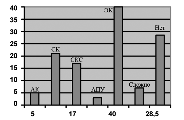 Выяснилось, что из респондентов, прослушавших курс, испытывают затруднения в освоении электронного каталога (ЭК) — 40%, систематического каталога (СК) — 21%, систематической картотеки статей (СКС) — 17%. Поиск во всех видах каталога оказался сложным для 7,5%, и лишь у 28,5% респондентов не возникло каких-либо затруднений.