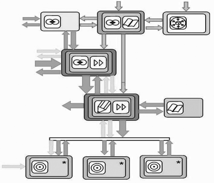 Библиотечные работники и архитекторы-проектировщики смотрят на вопрос организации библиотечного пространства по-разному. Работник библиотеки формирует пространство виртуального характера: образ пространства предстаёт «в ролях», в движении участников процесса, в результатах проводимой работы, в описании атмосферы, которая должна царить в помещениях. Архитектор же создаёт реальное, материально ограниченное пространство. И, описывая это пространство, выделяет значимые для себя признаки и характеристики, использует профессиональные понятия и категории. Конечный образ складывается из параметрических значений материальных объектов и мест, необходимых участникам процесса. Для архитектора одно из ключевых понятий — функция*, для реализации которой создаётся материальное пространство.1 Следующее важное понятие — технология деятельности, которая обеспечивает эффективное выполнение этой функции.