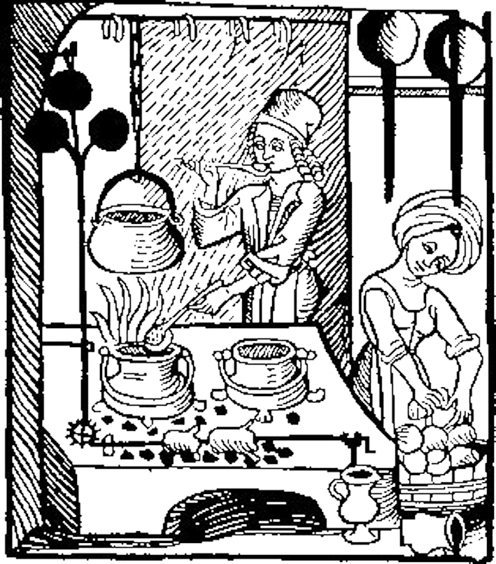 Из книги становится известно, что в XIV веке основным продуктом питания был хлеб. Его качество зависело от дохода семьи. Представители состоятельных сословий употребляли черный хлеб в качестве тарелок: большие буханки, обычно выпеченные накануне, нарезались крупными ломтями, в середине ломтя делали небольшое углубление, в которое затем клали еду. После обеда «тарелки» собирали в корзину и раздавали беднякам.