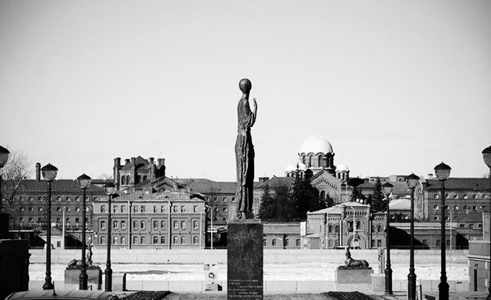 Итак, Воскресенская набережная, начало северной границы Литейного книжного округа. В 1995 г. у дома №12 открыт мемориальный спуск к Неве — гранитные плиты и сфинксы (скульптор М. Шемякин, соавтор А. Васильев, архитектор В. Бухаев), посвящённый жертвам кровавого террора (политических репрессий). Через Неву, напротив спуска, находится тюрьма «Кресты», где в годы репрессий находились многие писатели, поэты, деятели книги… В сквере у дома №12 в 2006 г. установили памятник А. А. Ахматовой (скульптор Г. В. Додонова, архитектор В. А. Реппо) к 40-й годовщине смерти поэтессы (гипсовое повторение скульптуры находится на территории «Крестов»).