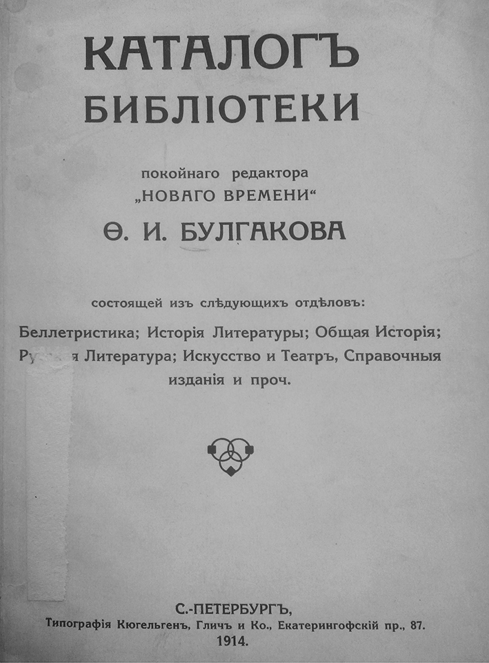 Фёдор Ильич Булгаков, неутомимый труженик на ниве русской культуры последней трети XIX–начала XX века, оставил после себя богатую библиотеку, которой он активно пользовался в своих изысканиях и работе над собственными монографиями.