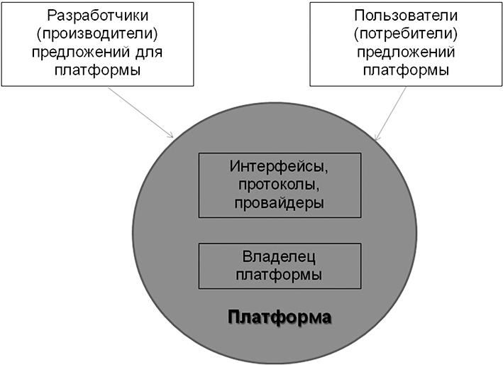Модель взаимодействия в формате платформы — не новая система построения организации (производственных отношений). Модели работы в формате платформы существуют давно. Например, логика работы торговых центров — сводить покупателей и продавцов, логика газет — объединять читателей, журналистов и рекламодателей. Сегодня благодаря информационным технологиям у любой организации всё меньше необходимости владеть материальной инфраструктурой и ресурсами в прежних объёмах. Создавать и развивать логику работы в формате платформы с использованием информационных технологий (ИТ) проще и дешевле, что ещё больше усиливает эффект сетевого взаимодействия. Платформы также являются генераторами большого объёма данных. И при использовании современных методов анализа всех появляющихся данных активно применяются технологии «больших данных» (Big Data)1. Основным критерием для данных, чтобы они стали «большими», является возможность обработки всего имеющегося массива. Если раньше статистика делала выводы на основе выборок из массива данных, то «большие данные» — это все данные, что имеются в наличии. И чем больше в рамках платформы появляется данных, тем ценнее становится платформа для всех участников взаимодействия.