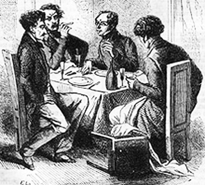Стендаль, строго судивший все французские провинции, о лионской кухне отзывался весьма лестно: «Там [в Лионе] прекрасно едят, по моему мнению, лучше, чем в Париже». В «Мемуарах путешественника» (1838) Стендаль отметил, что лионская кулинария рождалась на стыке народных традиций и требований буржуазии, и впервые описал своеобразное явление — гастрономические сообщества (societe gourmande, societe gastronomique). Эти сообщества состояли из 10–12 человек (только мужчин), знавших толк в еде и проводивших регулярные встречи с единственной целью — насладиться совместной трапезой. «На этих ужинах не было места ожесточённым спорам о политике, литературе, желанию показать утончённость своей мысли. Единственным делом было хорошо поесть», — писал Стендаль.29 В богатых лионских семьях уделялось особое внимание обучению кулинарному мастерству молодых девушек. Вот отрывок из личного письма того времени: «Мой отец написал известному отошедшему от дел ресторатору Дюбьефу и попросил давать уроки кулинарии его дочерям… на что Дюбьеф с радостью согласился».30