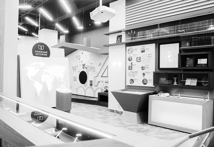А любителям настоящего книжного погружения библиотека предлагает уникальный мультимедийный парк «Книжные истории». Здесь можно познакомиться с историей письменности и книгопечатания, прикоснуться к страницам старинных книг, стать участниками событий любимых романов с помощью необычных иммерсивных выставок. Устройство мультимедийного парка предусматривает возможность полной или частичной смены контента, с момента открытия библиотеки он менялся уже несколько раз, причём, исключительно силами сотрудников библиотеки.
