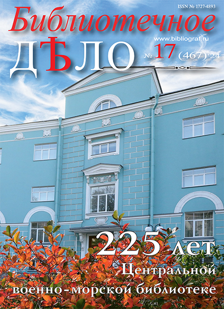 Уважаемые читатели журнала «Библиотечное дело», коллеги, друзья!Центральная военно-морская библиотека — одна из старейших и крупнейших библиотек в Вооруженных С…