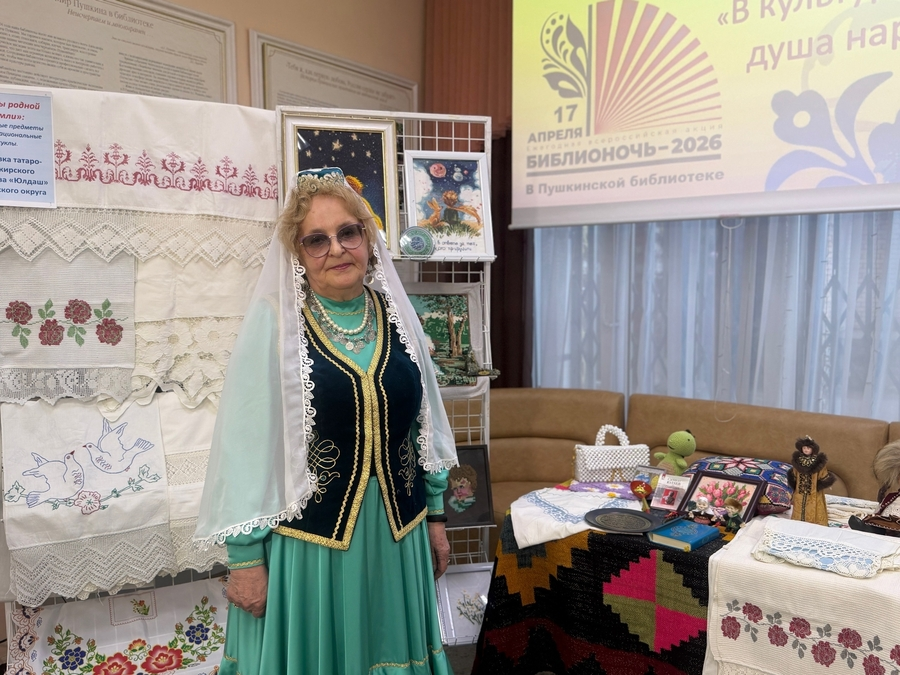 Отдельную выставку в библиотеке посвятили татаро-башкирским ремёслам. Кружево и вышивка — ручные работы нескольких поколений большой семьи Зифы Исламовой. Скатерти и полотенца, картины и сумочки. Секреты мастерства передала по наследству бабушка или нанайка — так говорят в Башкирии.