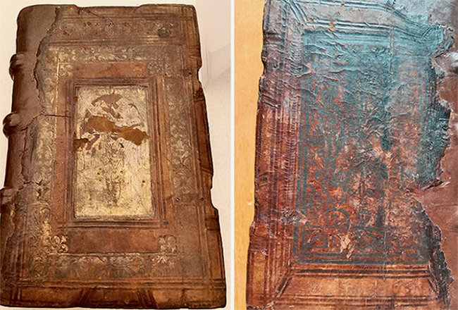 Значительные изменения претерпел переплет, корешок которого был сильно повреждён и заменён кожаной вставкой.