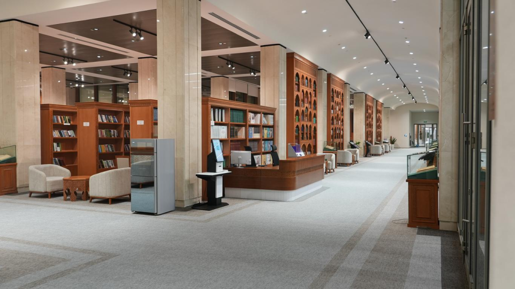 Для справки: библиотека «Новый Узбекистан», действующая при Центре, способна одновременно обслуживать до 266 посетителей. Ее фонд рассчитан на 300 тысяч печатных книг, из которых 250 тысяч размещены в хранилищах, а 50 тысяч находятся в открытом доступе, в музейных экспозициях.