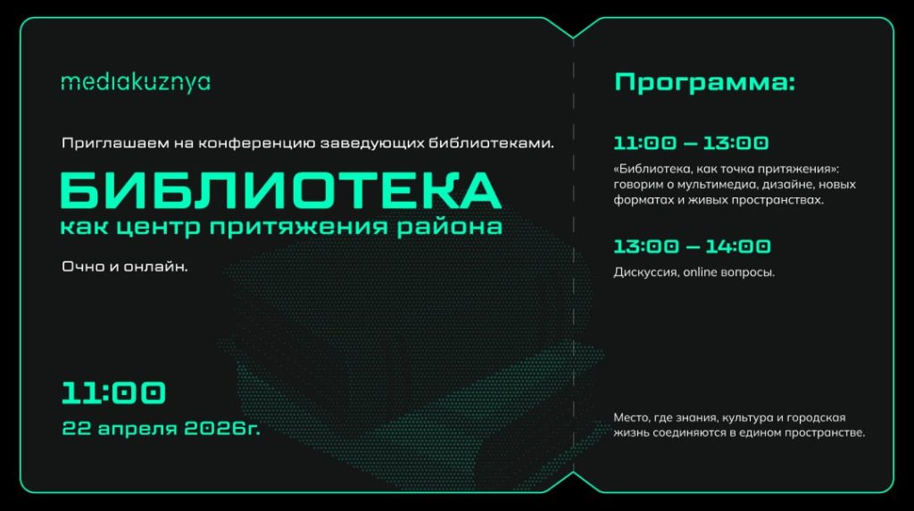 22 апреля 2026 года с 11:00 до 13:00 пройдёт онлайн-конференция, посвящённая трансформации библиотек в современные общественные пространства.