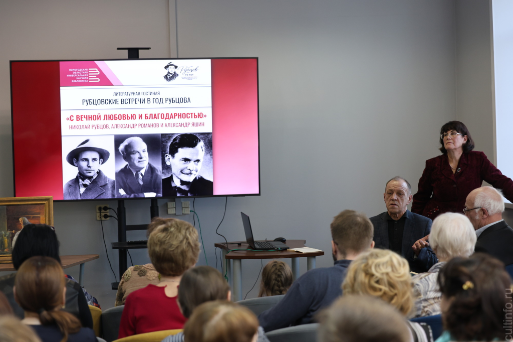 Цикл «Рубцовские встречи в год Рубцова» открыла Вологодская областная универсальная библиотека. Первое мероприятие «С вечной любовью и благодарностью» прошло с аншлагом 17 марта и было посвящено дружбе Николая Рубцова с вологодскими писателями Александром Романовым и Александром Яшиным.
